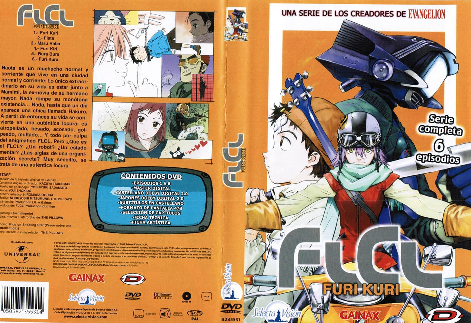 Naota es un muchacho normal y corriente que vive en una ciudad normal y corriente. Lo único extraordinario en su vida es estar junto a Mamimi, la ex-novia de su hermano mayor. Nada rompe su monótona existencia… hasta que un dia aparece una chica llamada Hakuro. A partir de entonces su vida se convierte en una auténtica locura: es atropellado, besado, acosado, golpeado, multado… Y todo por culpa del enigmático FLCL. Pero… ¿Qué es el FLCL?
