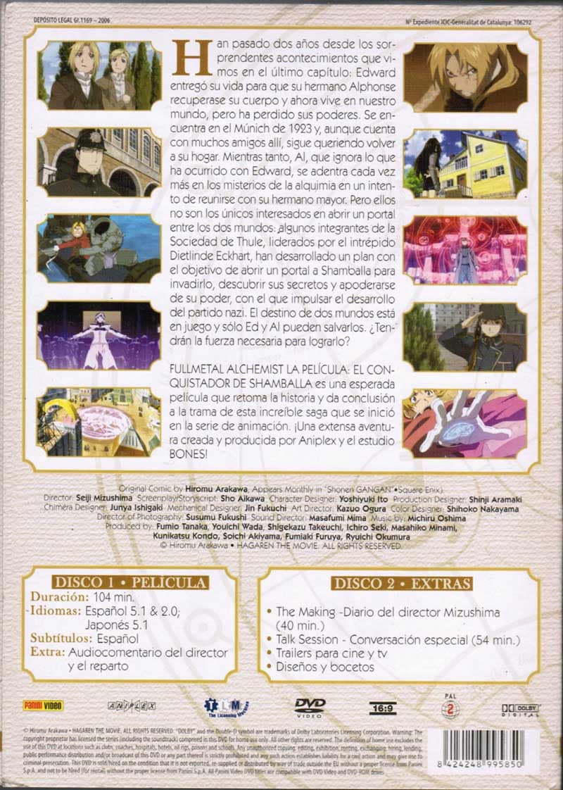 ‘Fullmetal Alchemist The Movie: El conquistador de Shamballa’ nos sitúa cuando han pasado dos años desde que Edward entregó su vida para que su hermano Alphonse recuperase su cuerpo y ahora vive en nuestro mundo, pero ha perdido sus poderes. Se encuentra en el Munich de 1923 y aunque cuenta con muchos amigos allí, sigue queriendo volver a su hogar. Mientras tanto, Al, que ignora lo que ha ocurrido con Edward, se adentra cada vez más en los misterios de la alquimia en un intento de reunirse con su hermano mayor. Pero ellos no son los únicos interesados en abrir un portal entre los dos mundos: algunos integrantes de la Sociedad de Thule, liderados por el intrépido Dietlinde Eckhart, han desarrollado un plan con el objetivo de abrir un portal a Shamballa para inadirlo, descubrir sus secretos y apoderarse de su poder, con el que impulsar el desarrollo del partido nazi. El destino de dos mundos está en juego y sólo Ed y Al pueden salvarlos.¿Tendrán la fuerza necesaria para lograrlo?