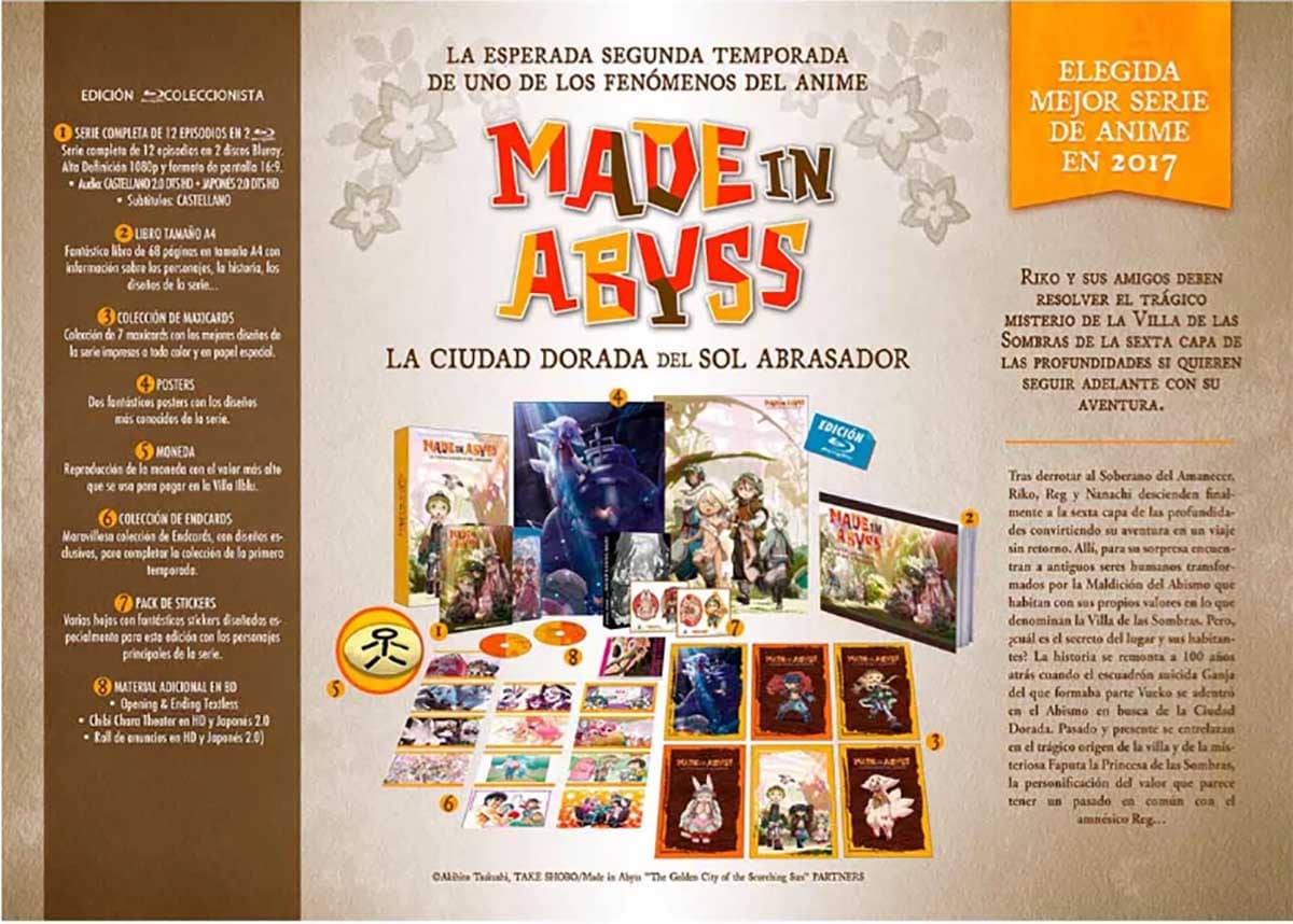 Riko y sus amigos deben resolver el trágico misterio de la Villa de las Sombras de la sexta capa de las profundidades si quieren seguir adelante con su aventura. Tras derrotar al Soberano del Amanecer, Riko, Reg y Nanachi descienden finalmente a la sexta capa de las profundidades convirtiendo su aventura en un viaje sin retorno. Allí, para su sorpresa encuentran a antiguos seres humanos transformados por la Maldición del Abismo que habitan con sus propios valores en lo que denominan la Villa de las Sombras. Pero, ¿cuál es el secreto del lugar y sus habitantes? La historia se remonta a 100 años atrás cuando el escuadrón suicida Ganja del que formaba parte Vueko se adentró en el Abismo en busca de la Ciudad Dorada. Pasado y presente se entrelazan en el trágico origen de la villa y de la misteriosa Faputa la Princesa de las Sombras, la personificación del valor que parece tener un pasado en común con el amnésico Reg…