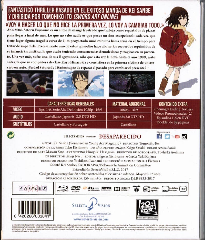 Desaparecido (Erased) Vol.1 Ed.Coleccionista (BluRay)