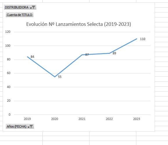 Evolución por años de lanzamientos de Selecta